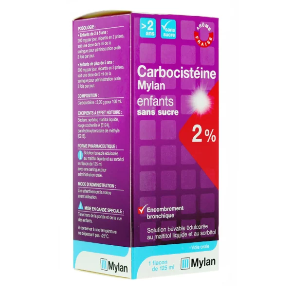 La dose correspondant à la graduation 5 ml de la seringue pour administration orale contient 100 mg de carbocistéine.